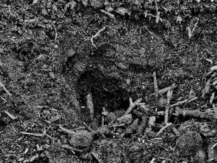 ...and dug holes. Fun fact: you know which animal is behind which infraction. The badgers scratch with their claws (above) and the earth collects behind. The boars use their snouts and the unearthed matter is hollowed out in porcine-proboscis shapes: