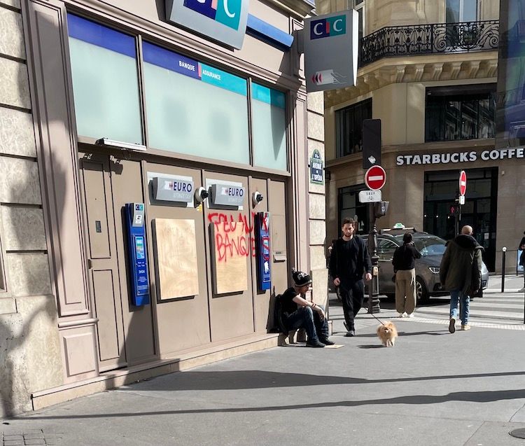 The violence that flashed across screens around the world on March 23rd (and elicited several concerned emails from friends) occurred at the end of the march and was not incited by the demonstrators but by les black blocs, the anti-capitalists/anarchists/agitators who dress top to toe in black and set kiosks on fire, break windows and generally cause as much destruction as possible. Many banks around the city are now boarded up.