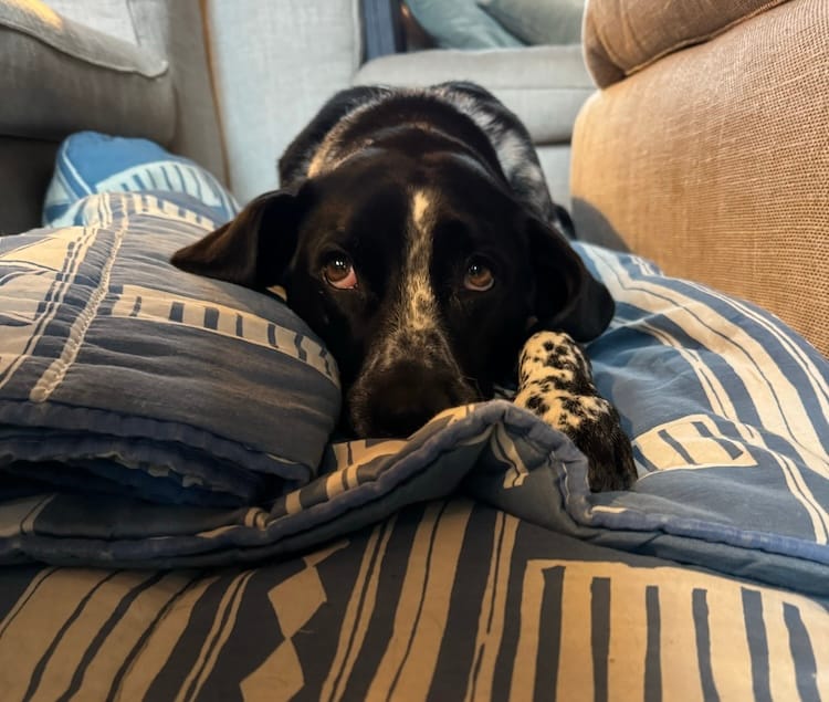 She gets me out of the house and exercised, lies at my side while I work and is fully dedicated to her job as our protector.