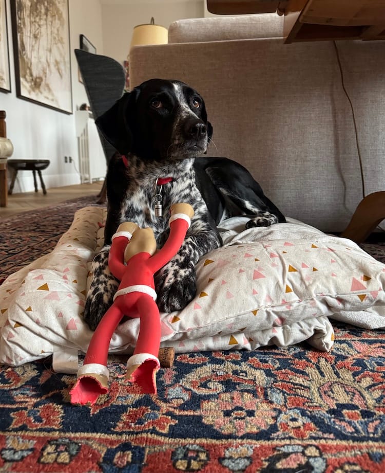 Fortunately Tasha also has many endearing qualities. She is clever (opens doors with her paws) and funny (has squeak conversations with the squeak toys she hasn't destroyed) and loves our family; our family loves her.