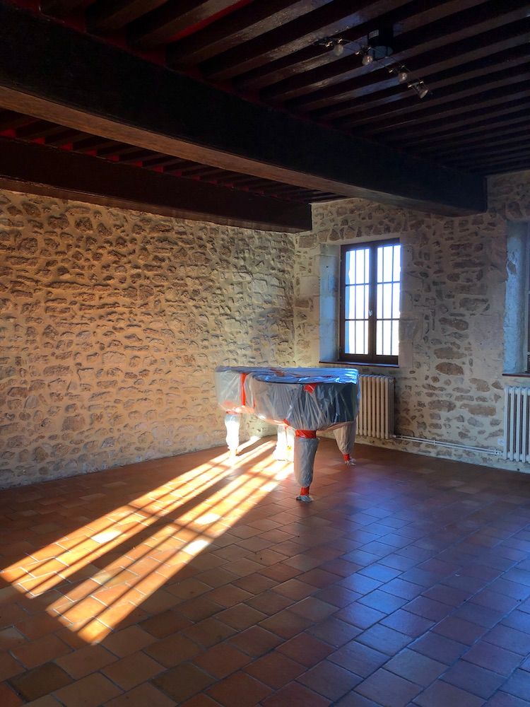 Two weeks ago we were told to pack up the sitting room and leave our place in the Perche. The masons were ready to break through the 450-year old wall and connect the house and former barn. There would be lots of noise and dust and little heating. Plus the cooker and fridge were blocked by sofas and chairs, the table littered with lamps, since we'd moved all the furniture but Carl-the-piano into the kitchen.
