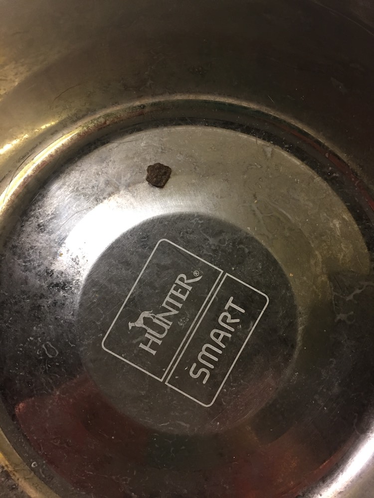 Madame P, who has taken care of all our dogs when we travel, said that some pellets of another dog had got mixed up with Tasha’s and Tasha would have nothing to do with them.