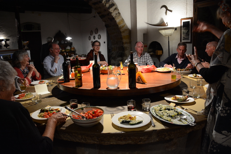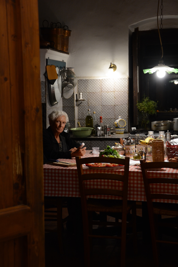 ...our copious, exquisite dinners around the old mill-stone, now a table with a giant lazy susan in the middle and a perfect symbol of how Sicily has embraced the new while not tossing out the old.
