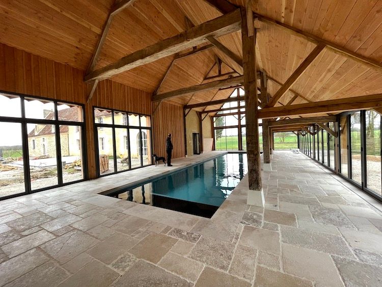 Meanwhile, after lengthy, existentially fraught discussions, we decided to transform the farm building from a shelter for tractors and farm animals to a covered swimming pool for humans...