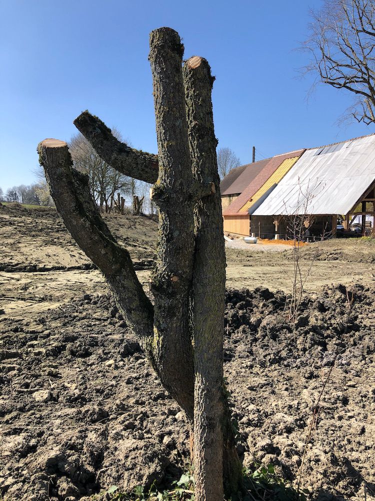 Granted the place has not yet really lost its Verdun look. No grass has been seeded after all the digging and churning of earth of the previous months and the land remains raw. Piles of soil, sand, wood chips and stone blot almost every vista. As noted in the email, lots of amputating has been going on.