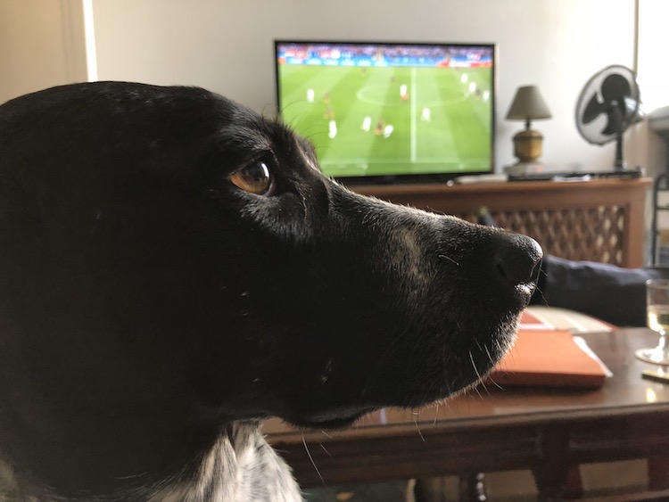 A concerned canine during the England-Croatia match