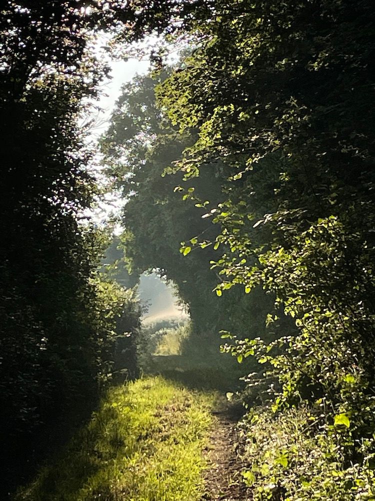 When not busy with people, we've been much focused on the out of doors. It's been an odd spring. For three weeks in May a northeast wind blew non-stop and so bitterly, that I dressed covered up like a past-it, reclusive celebrity for the morning walk. Here we are on the 31st: