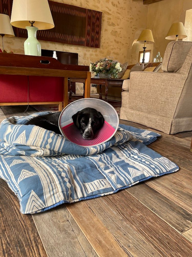 Fortunately, my sister told me about a travel-style neck cushion that would also stop her licking the wound, and Tasha's mood improved.